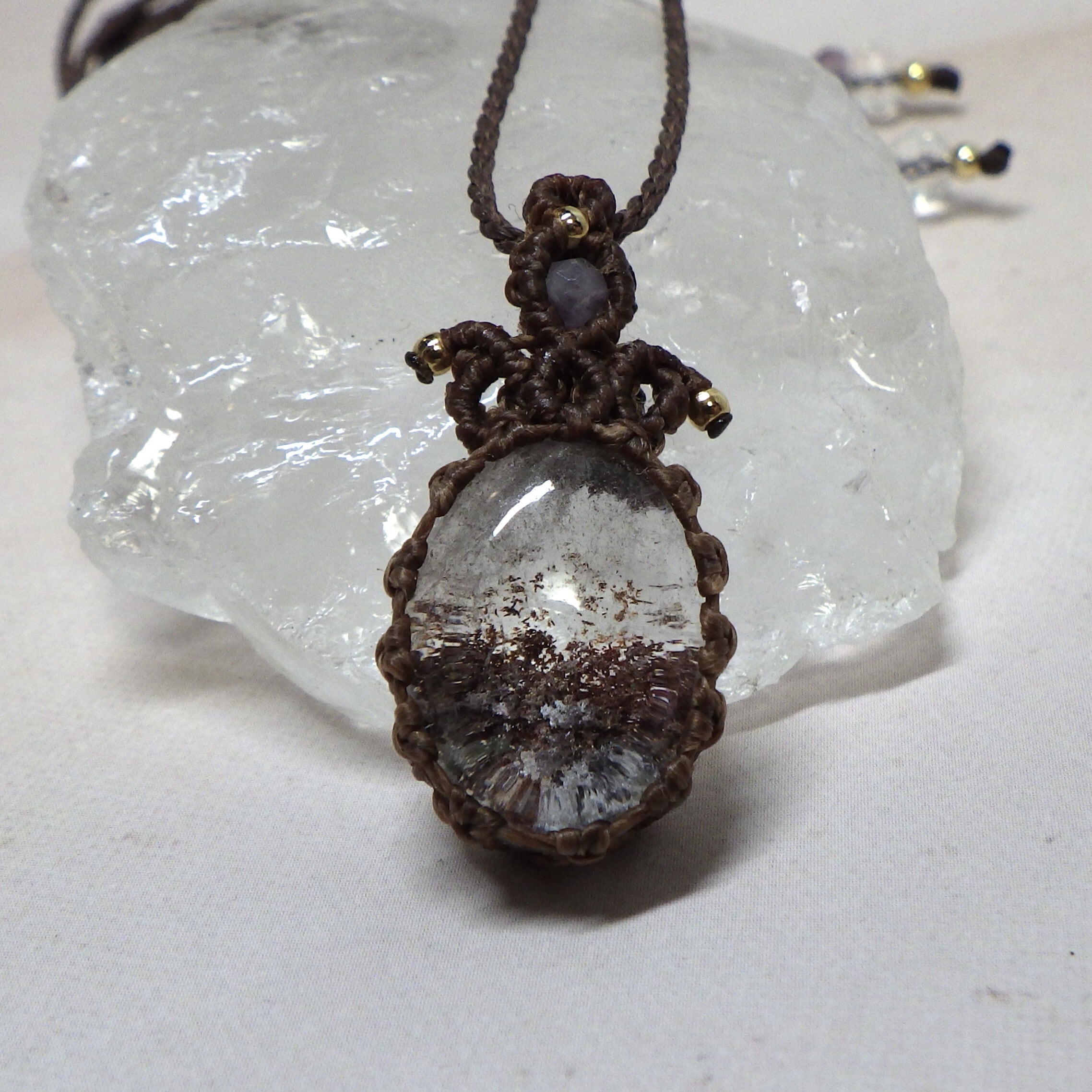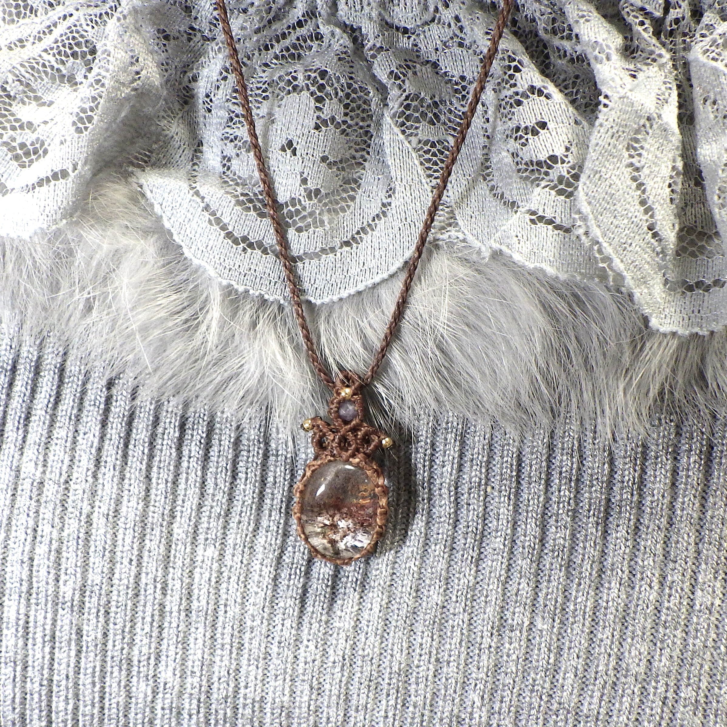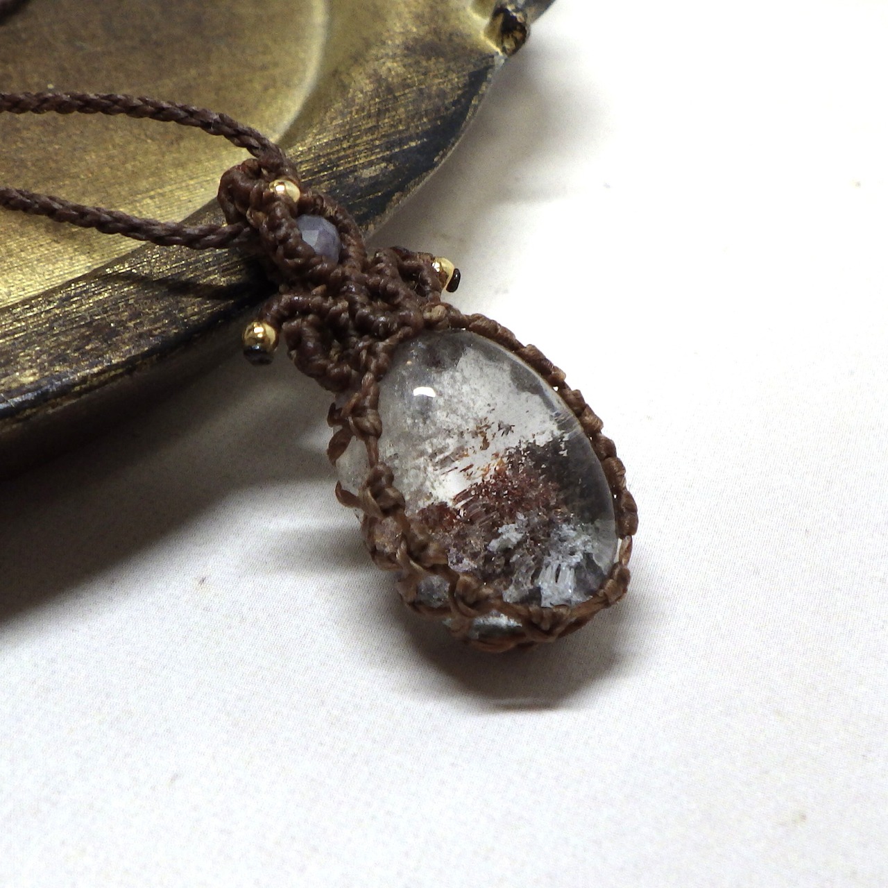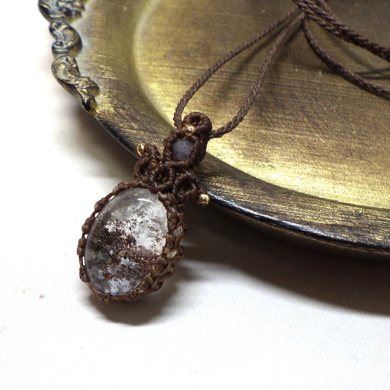 人気のガーデンクォーツは内包物の色や形が一つとして同じものがないため、透かし編みでフレーミングしたことで、