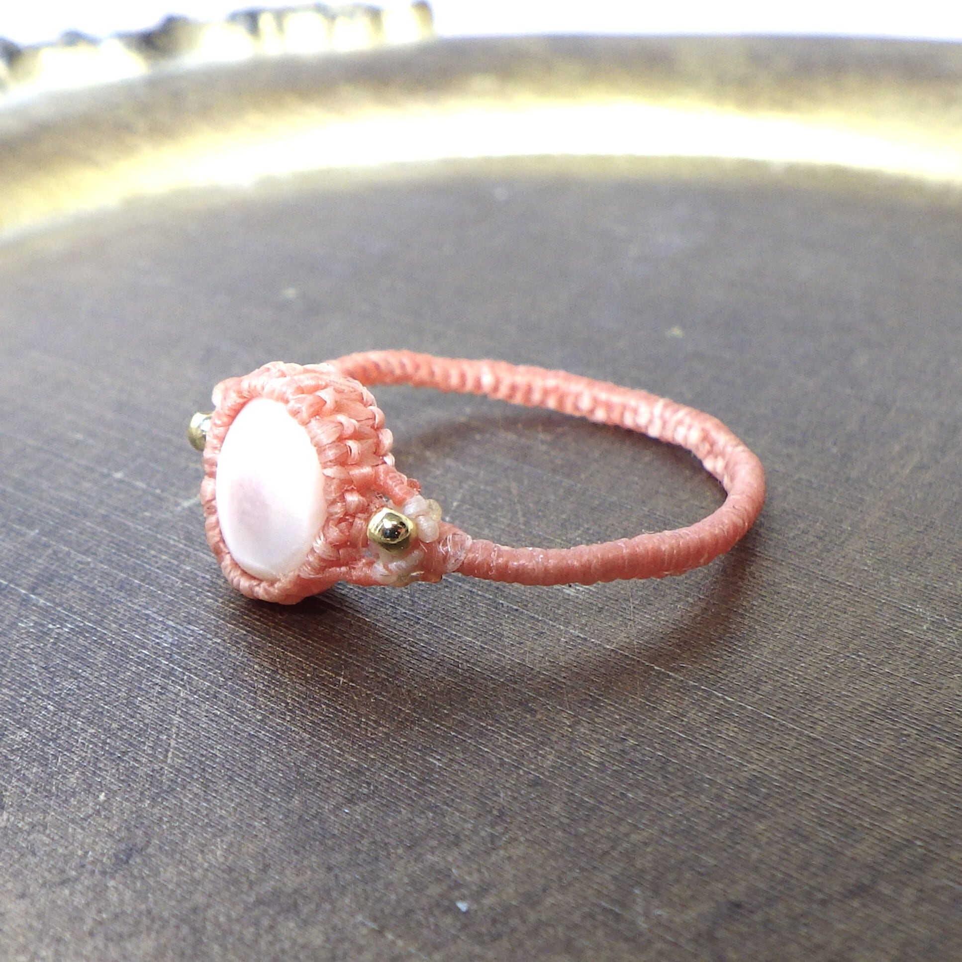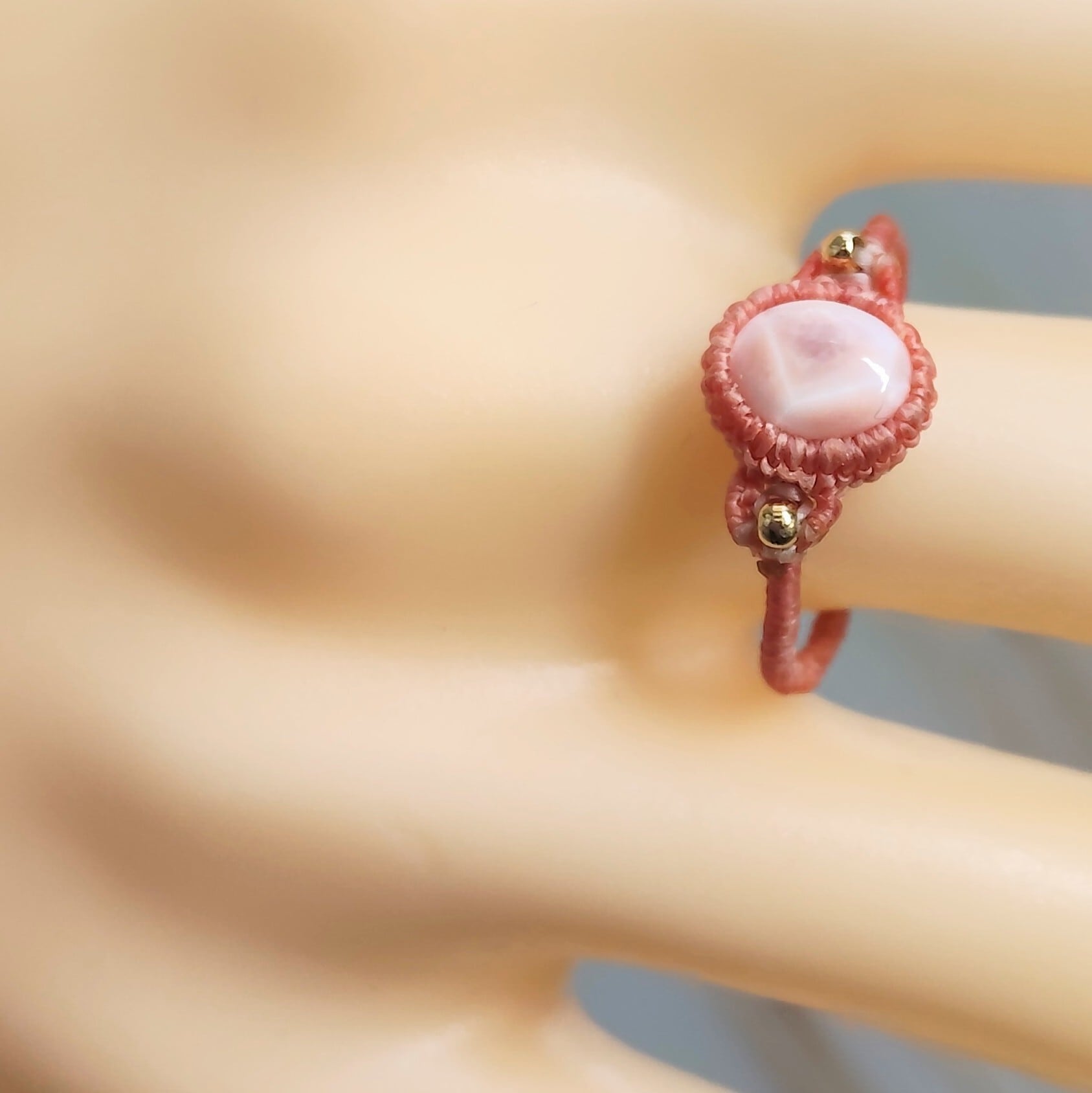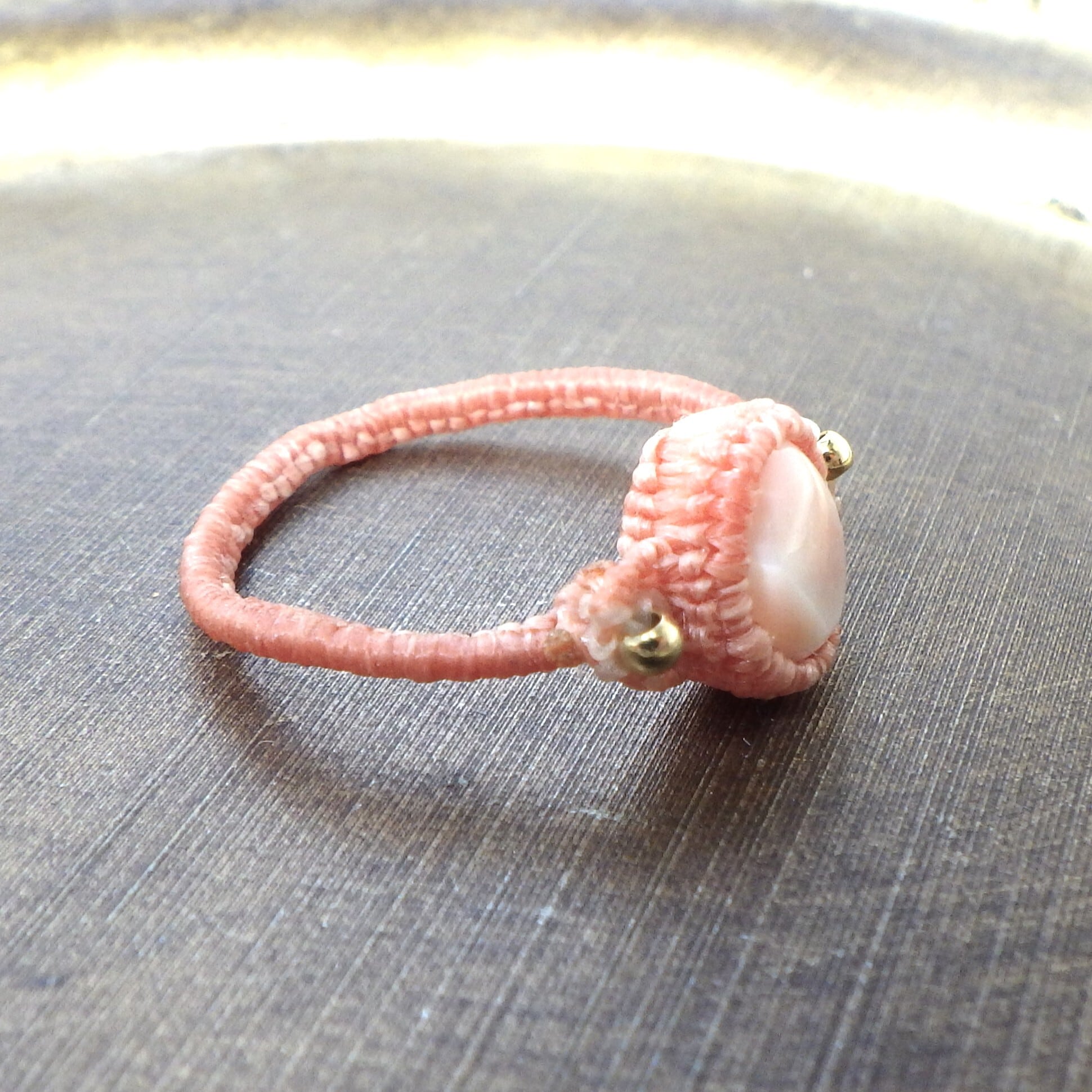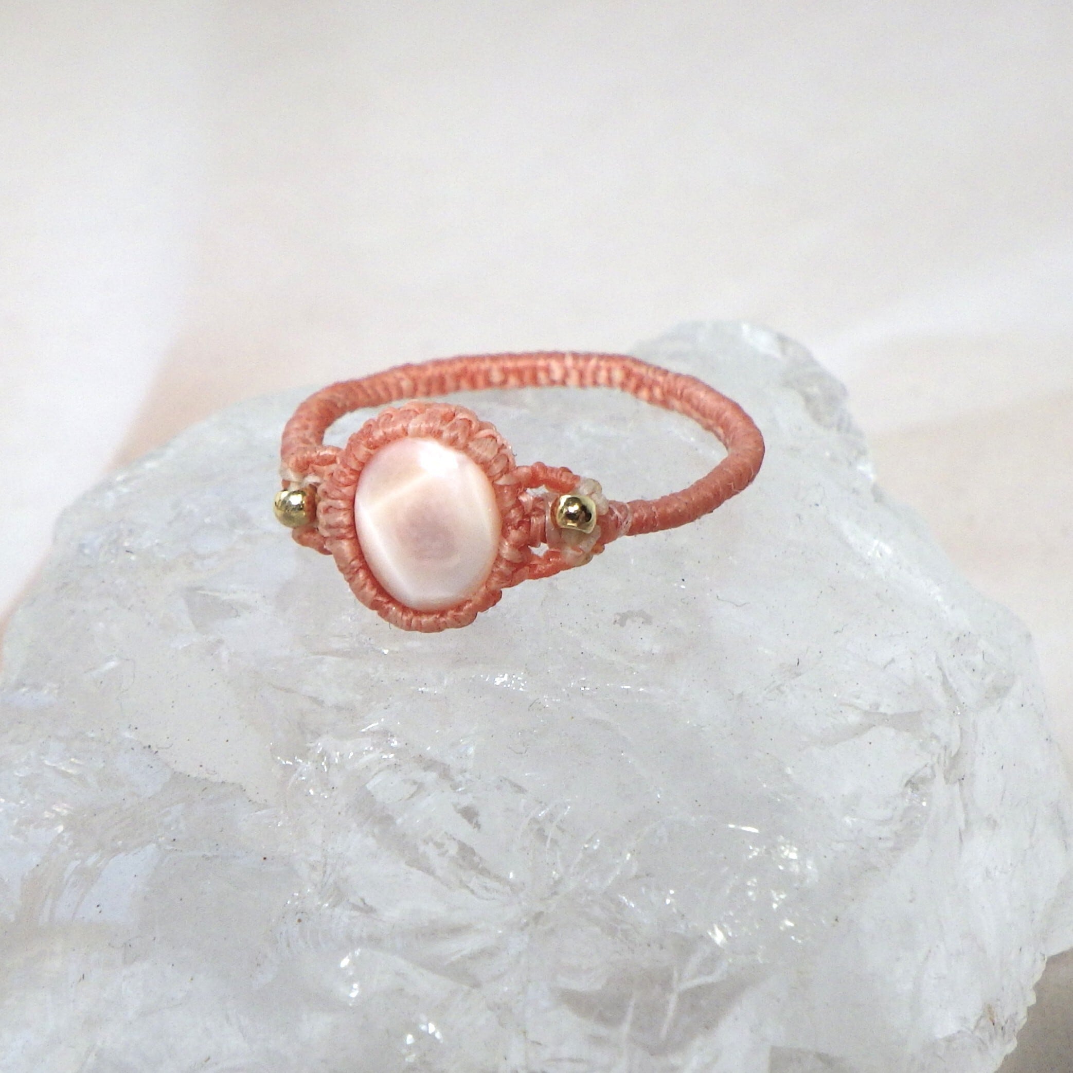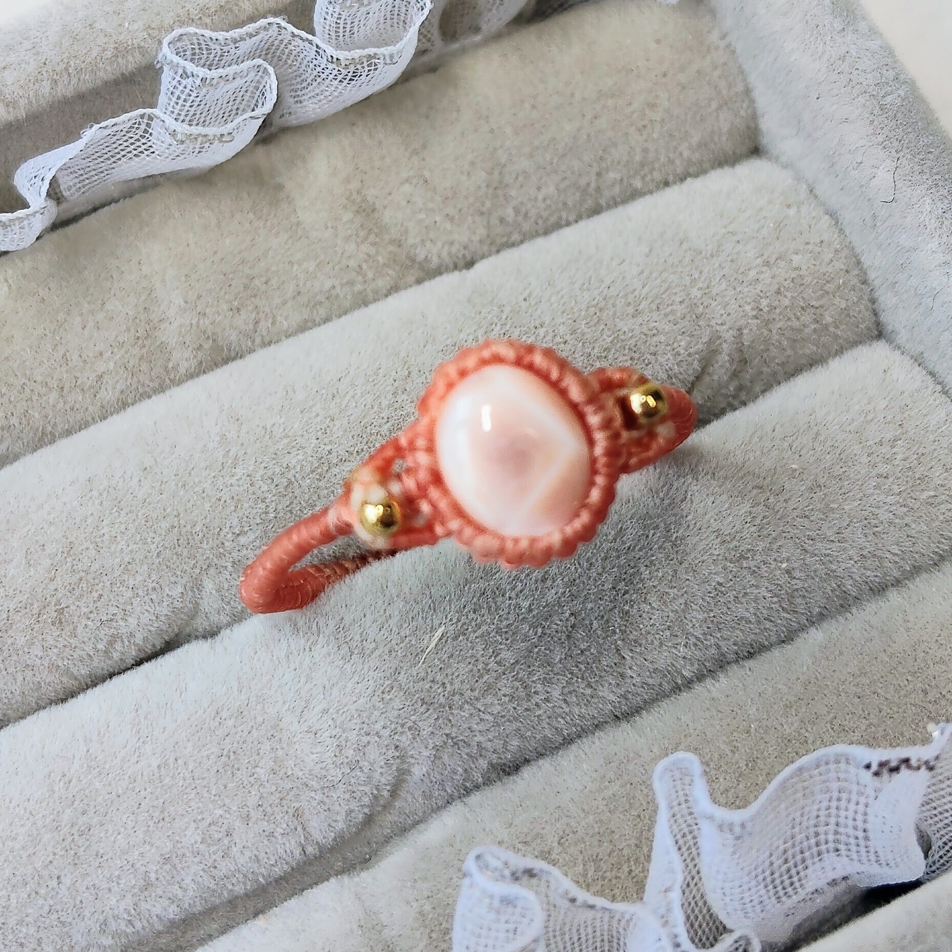白とオレンジ系の優しい色合いで、波模様が特徴的なトムソナイトリングです。