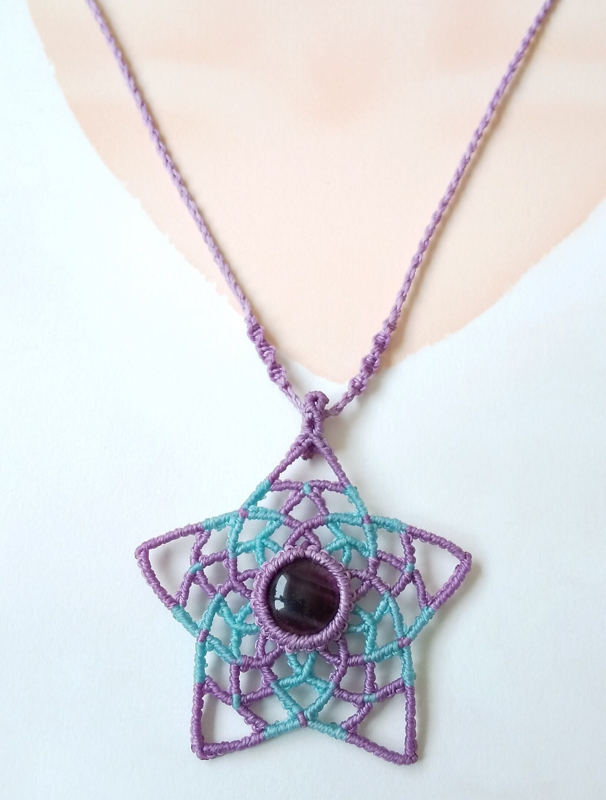 薄紫色と水色の2色のコードで、ふわっと優しいイメージの星型を編みました。「デザイン:Regalissさん」ペンダントトップです。