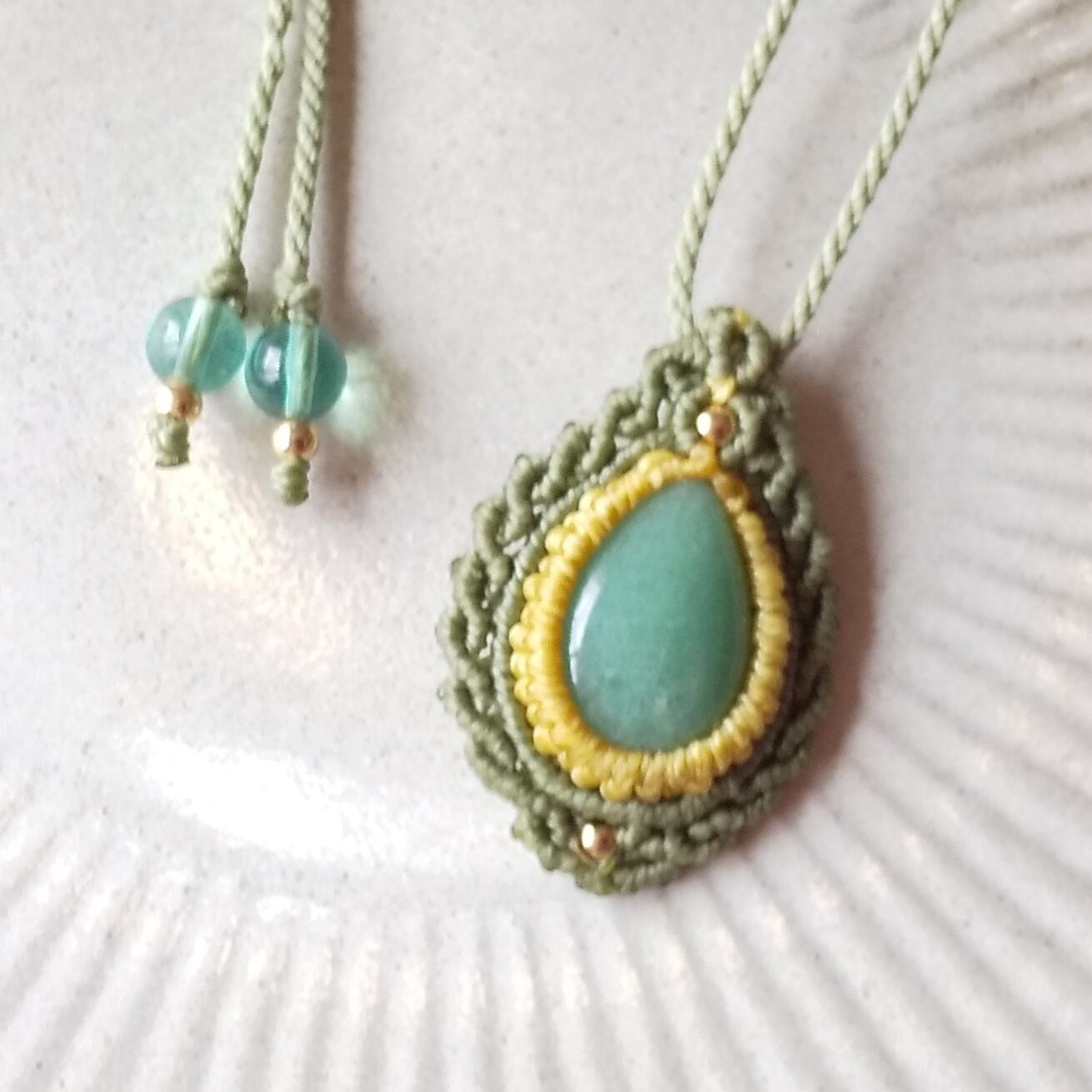 グリーンアベンチュリンを2色のコードでのフレーミングしました。