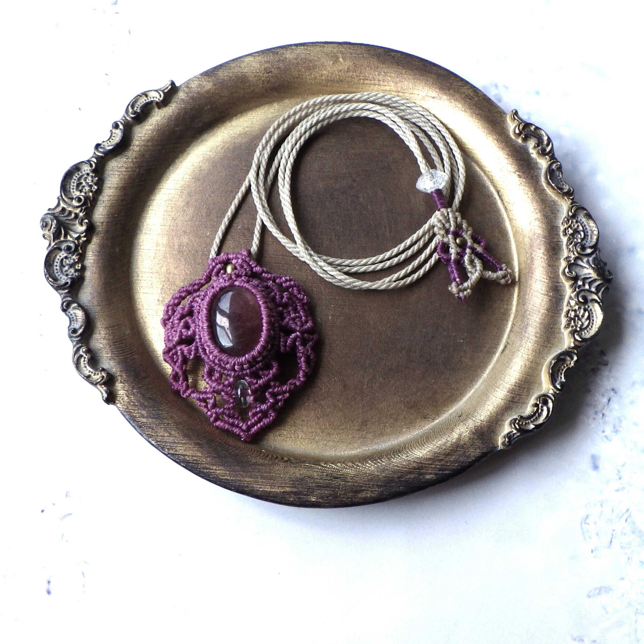 「結ぶ」ことで模様が生まれるマクラメ編みのネックレスです。