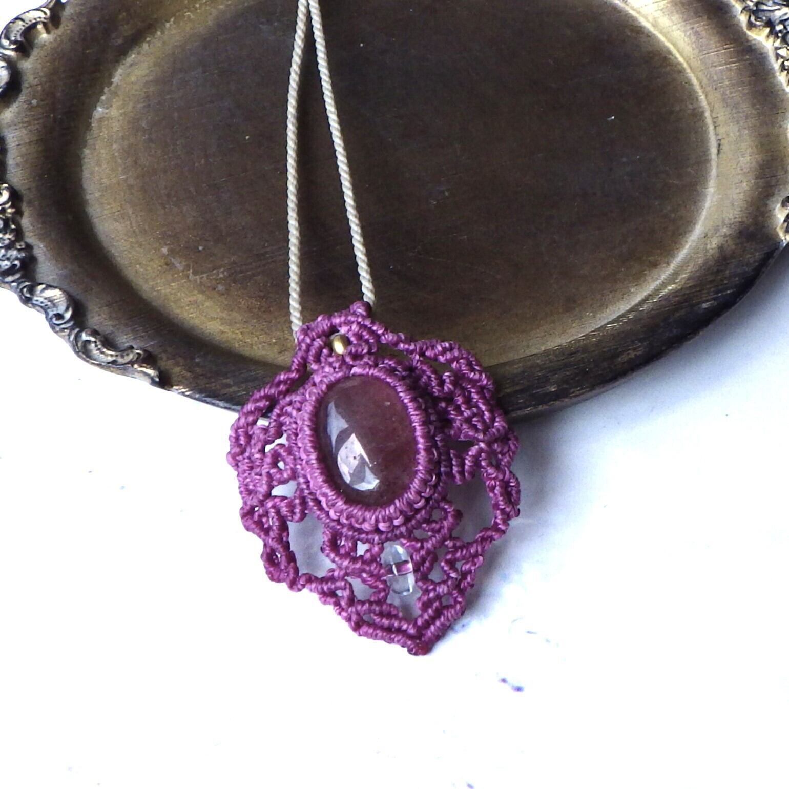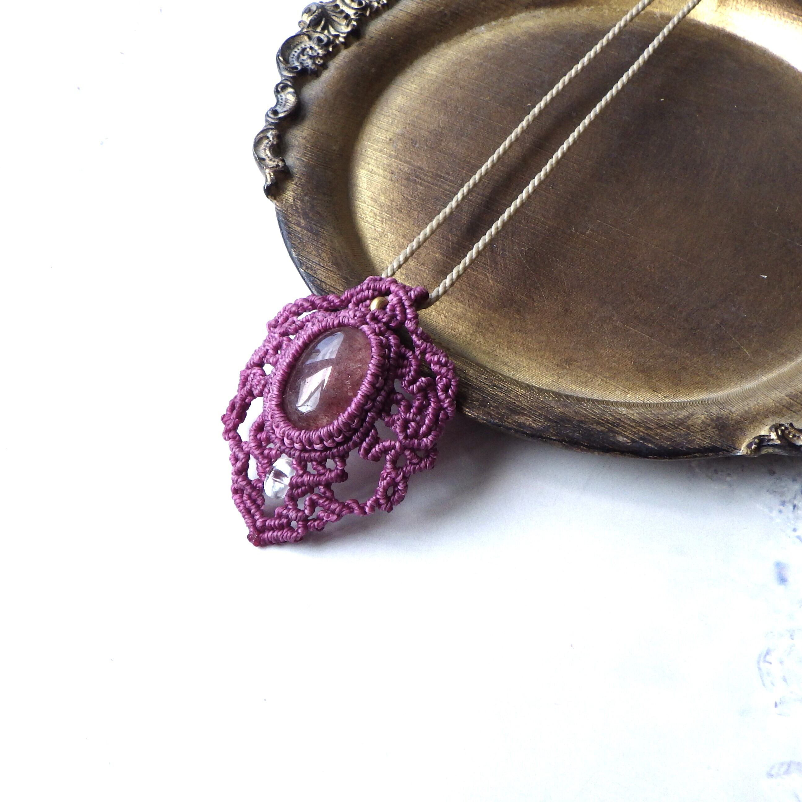 苺ジャムのような色のストロベリークォーツの周りをレースで包んだような