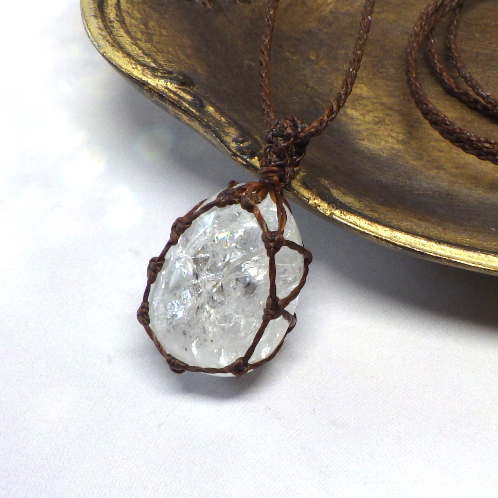 クラック水晶を透かし編みでフレーミングしたナチュラルで可愛いペンダントネックレスです。