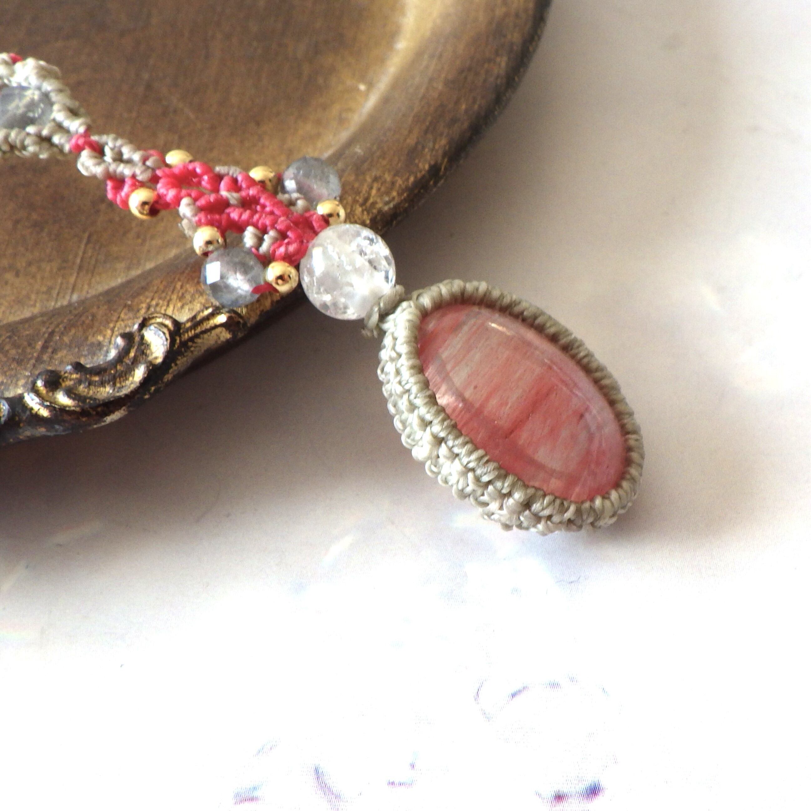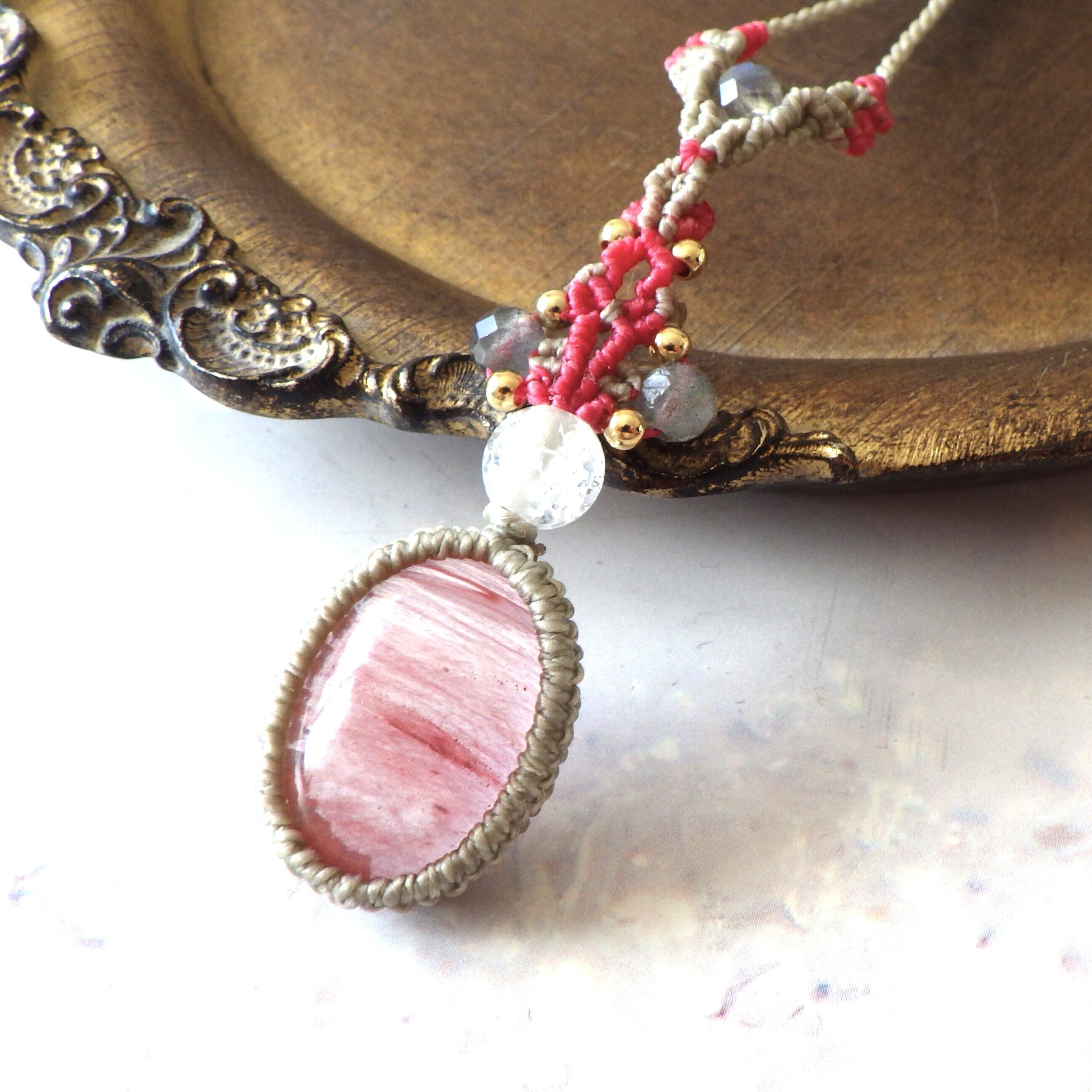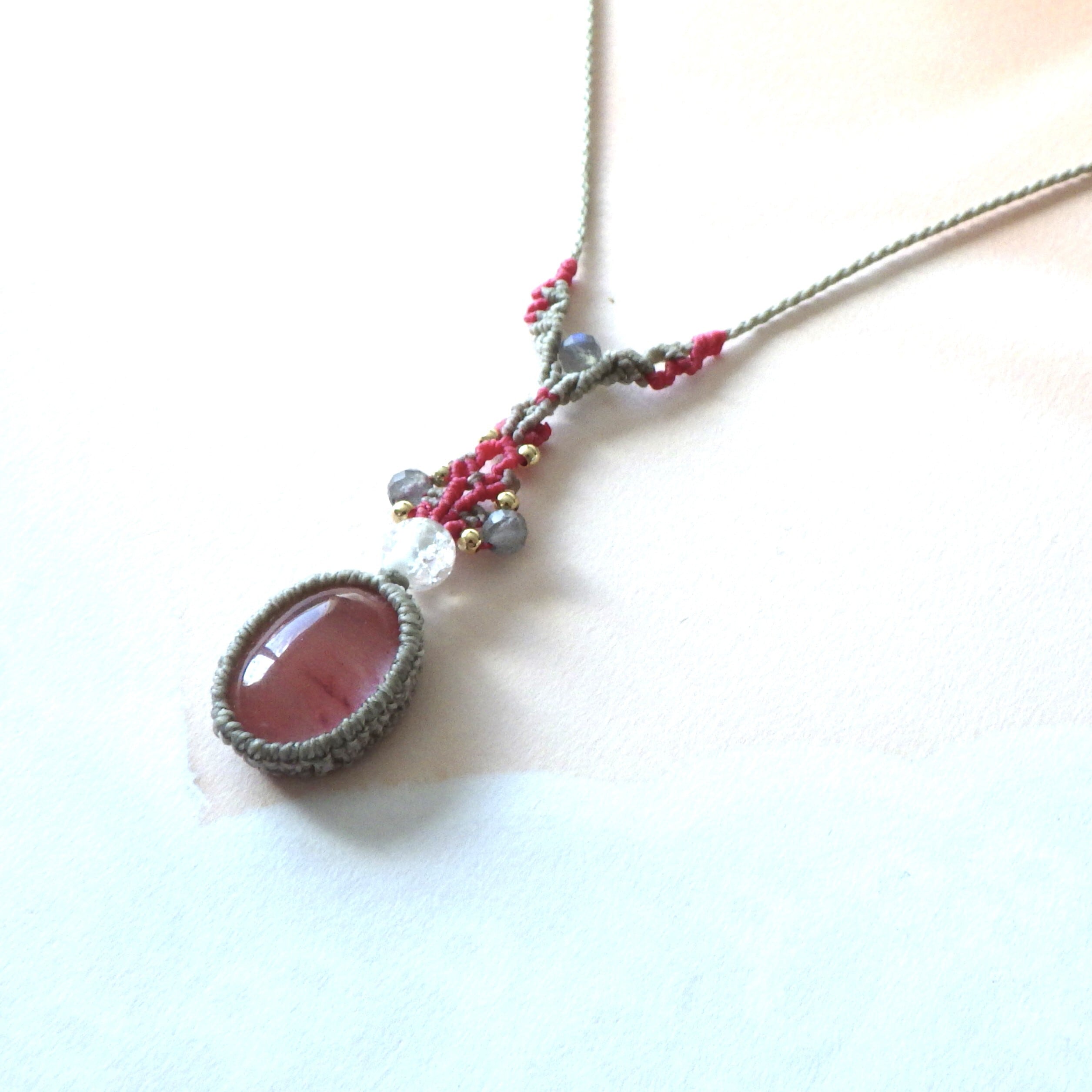 愛らしいストロベリークォーツ「トルシュ」マクラメネックレス
