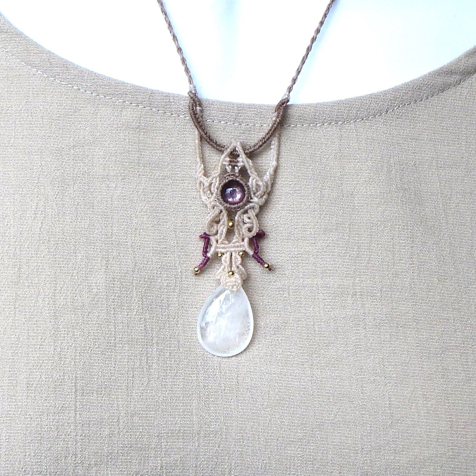 コードを「結ぶ」ことで模様が生まれるマクラメ編みのネックレスです。